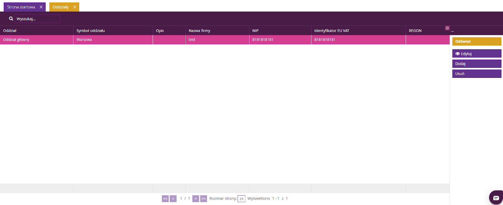 Wybierz odpowiedni oddział, następnie kliknij Edytuj.